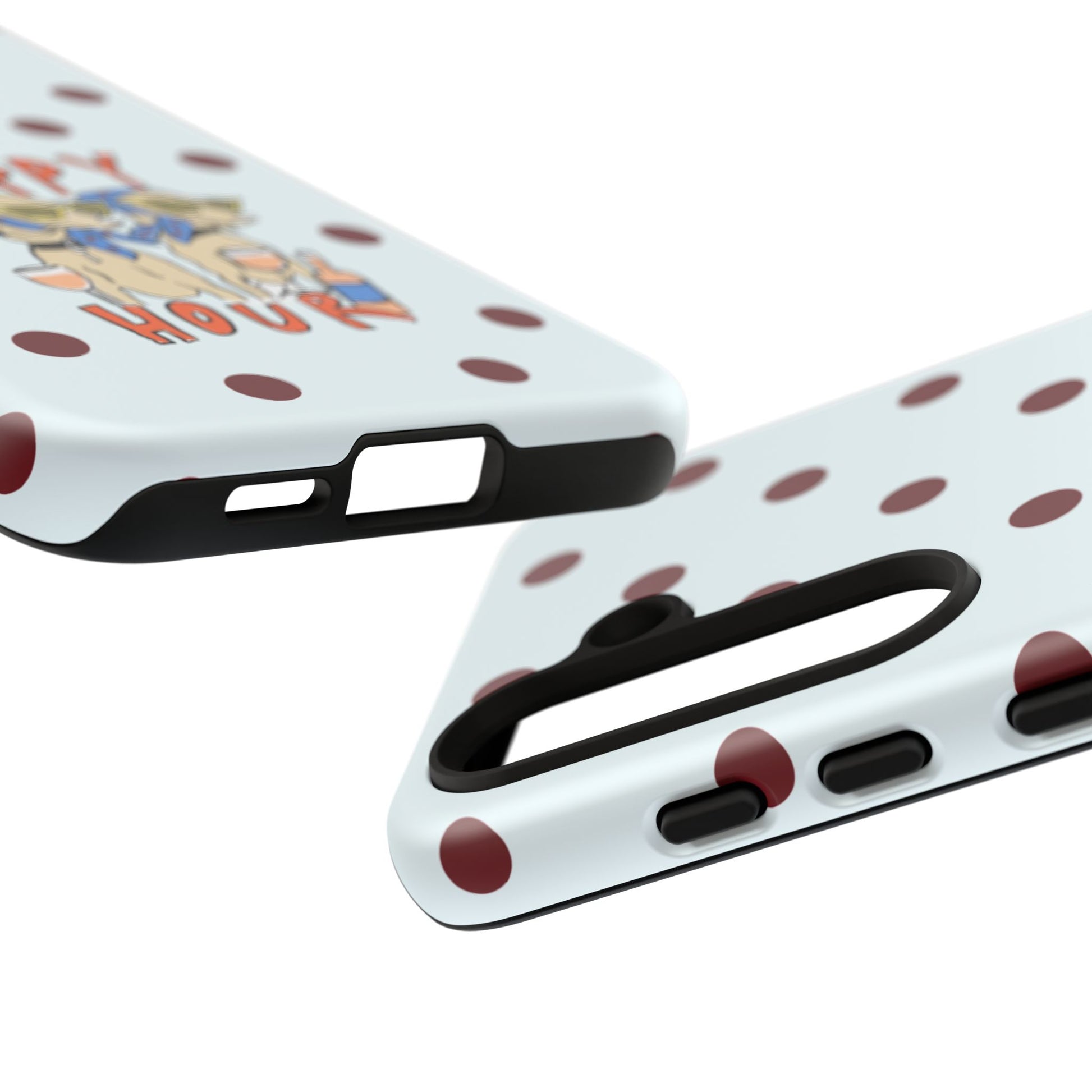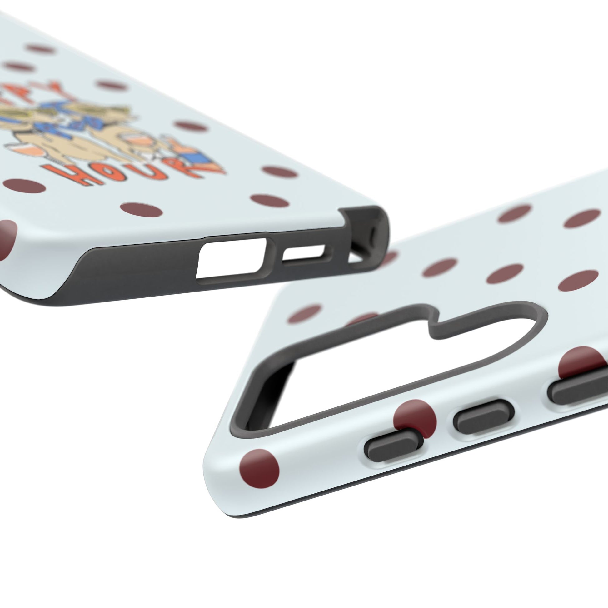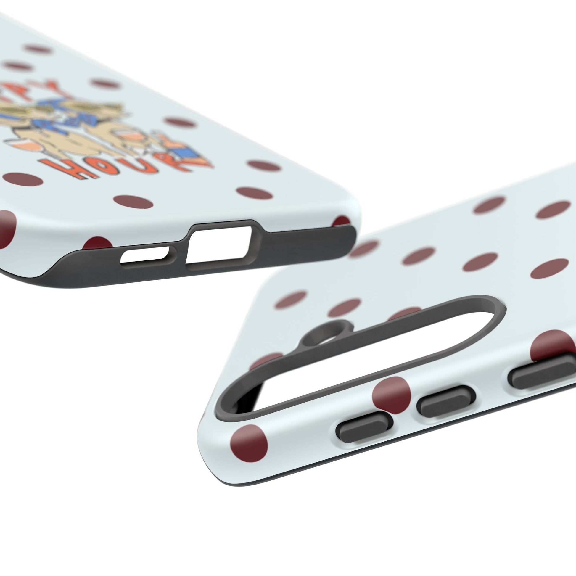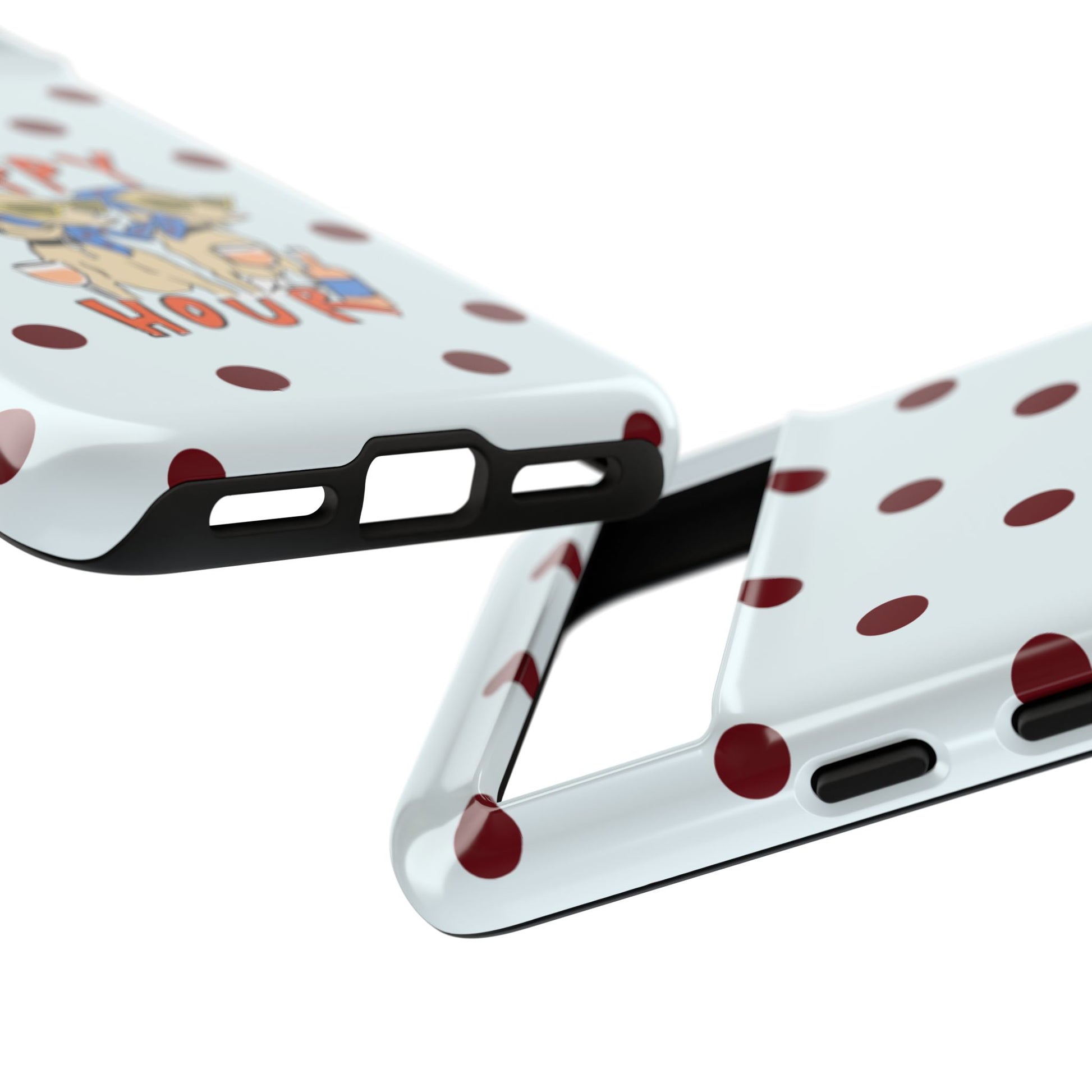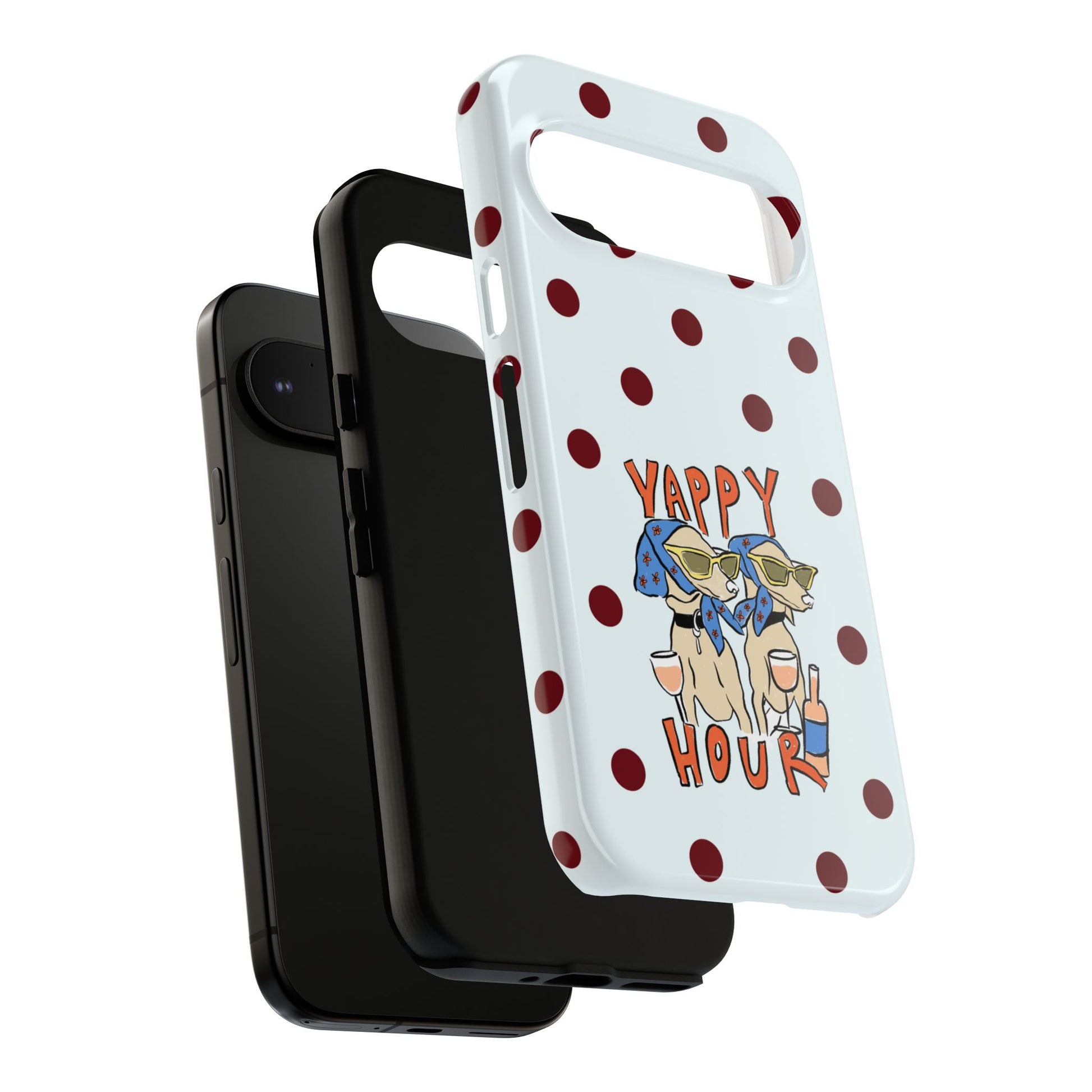 Laughing pups, clinking glasses, and playful polka dots—this phone case brings a little happy hour wherever you go. The illustration captures dogs lounging with wine glasses, barking gossip and cozy summer energy. For adults who love cheeky, whimsical designs and reliable protection, this case balances personality with punchy durability.