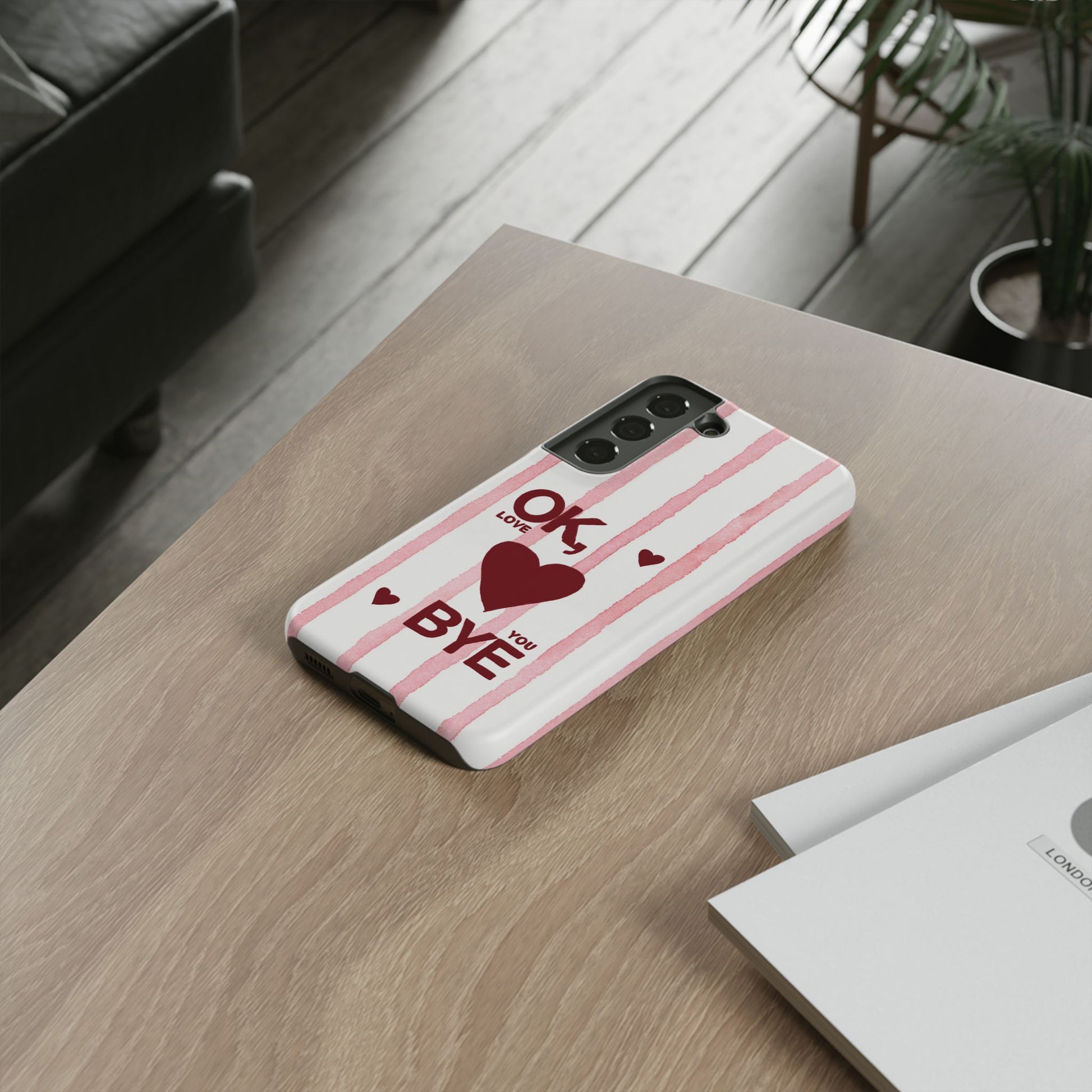 This phone case carries a small, wry moment - the lyric-turned-gesture of saying “ok, love you, bye” as you click the call closed. It’s for people who keep softness and sass in equal measure: those late-night texters, playlist sharers, and anyone who treats daily rituals like little stories.